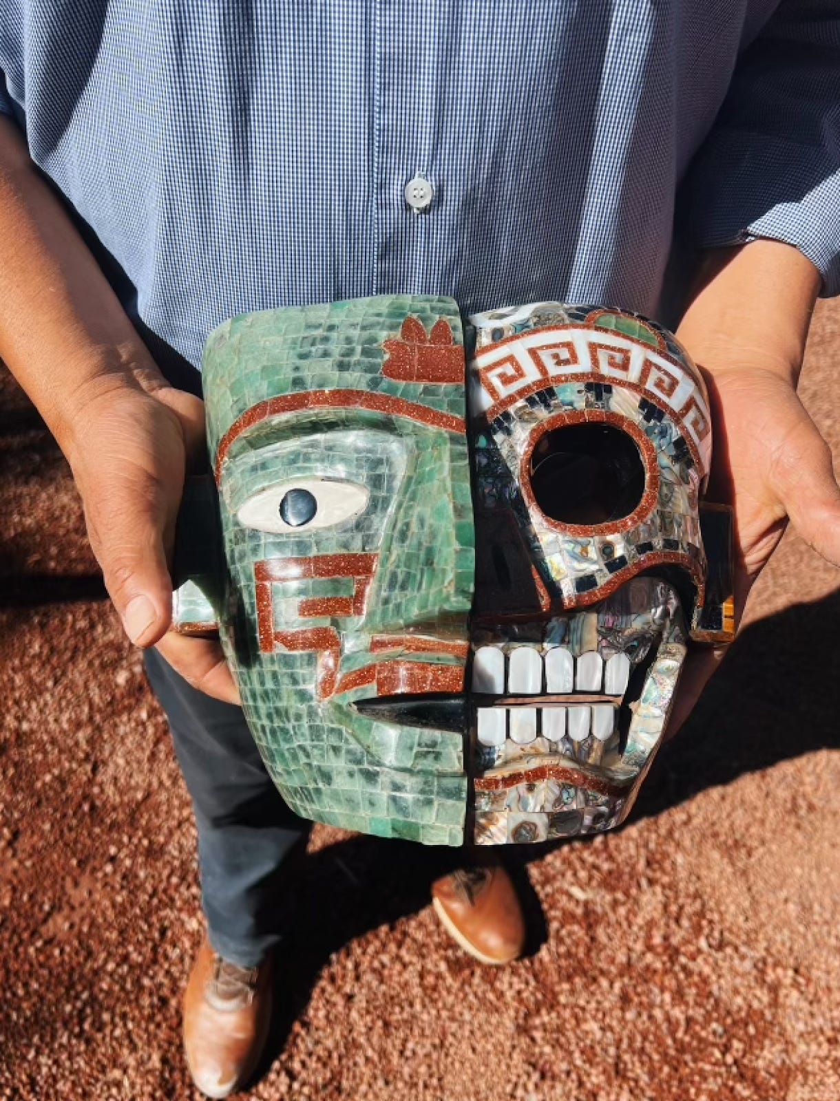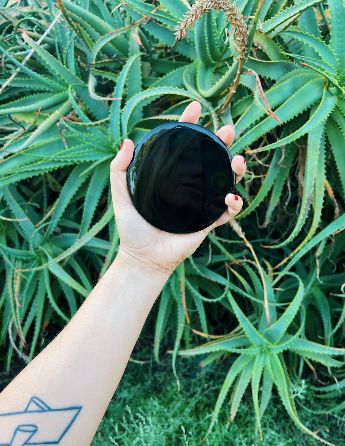 Back in February when I spent the month studying Spanish in Mexico, I visited the Pyramids of the Sun and Moon at the archeological site Teotihuacan. Part of the trip included a visit to a silver and obsidian manufacturer in San Martín Centro. Our guide Geraldo showed us all of the giant slabs of obsidian. I was slightly familiar with obsidian, being a lover of crystals and stones. I always knew it as a stone of protection, black being the color of power and groundedness. Our guide told us the history of obsidian for weapons, it’s sharpness used for tools by the Aztecs and other ancient civilizations. Protection on all levels. He showed us a mosaic life-and-death mask he created, I ended up purchasing a smaller version of the one he showed me. Then he handed me something I had never seen before, a black mirror.
